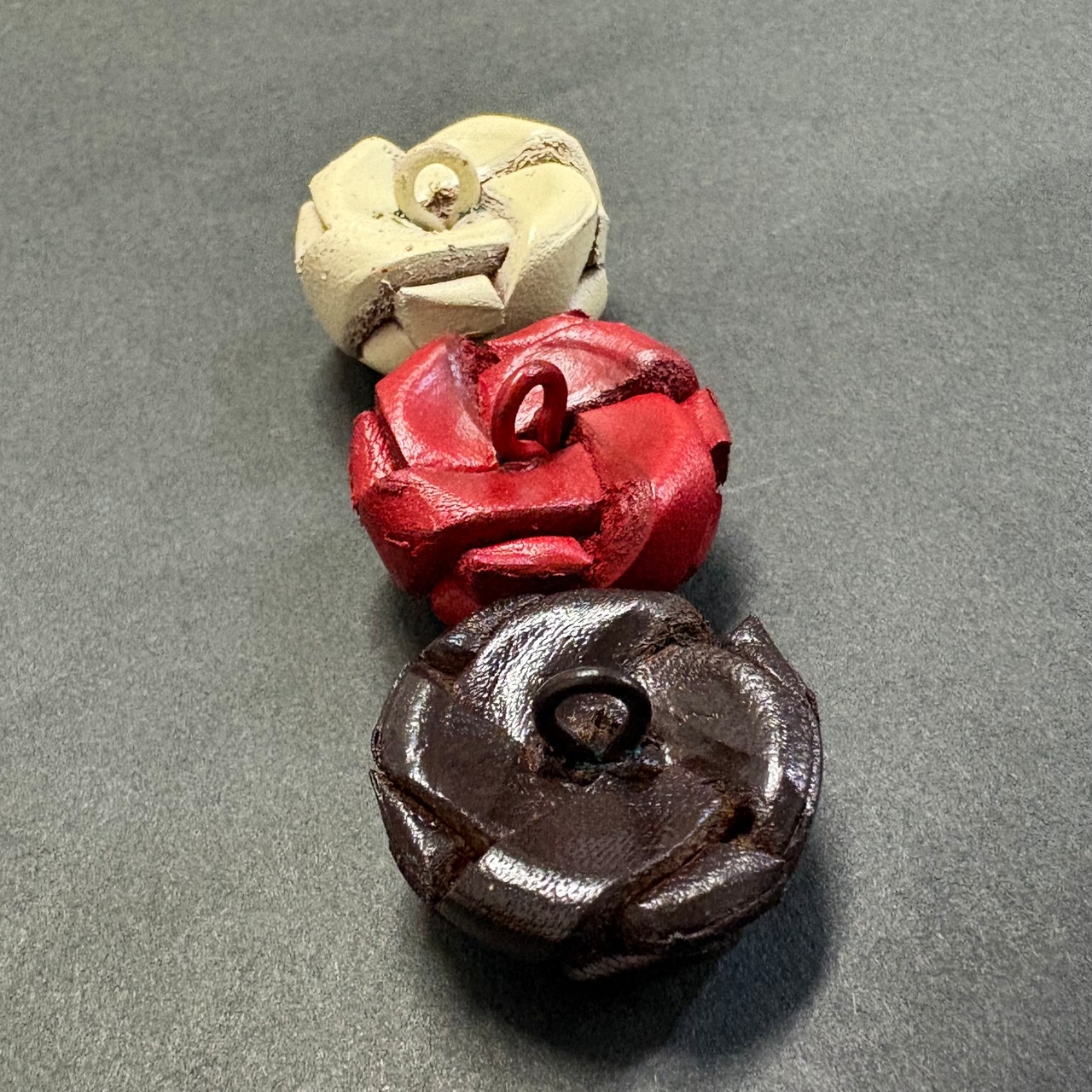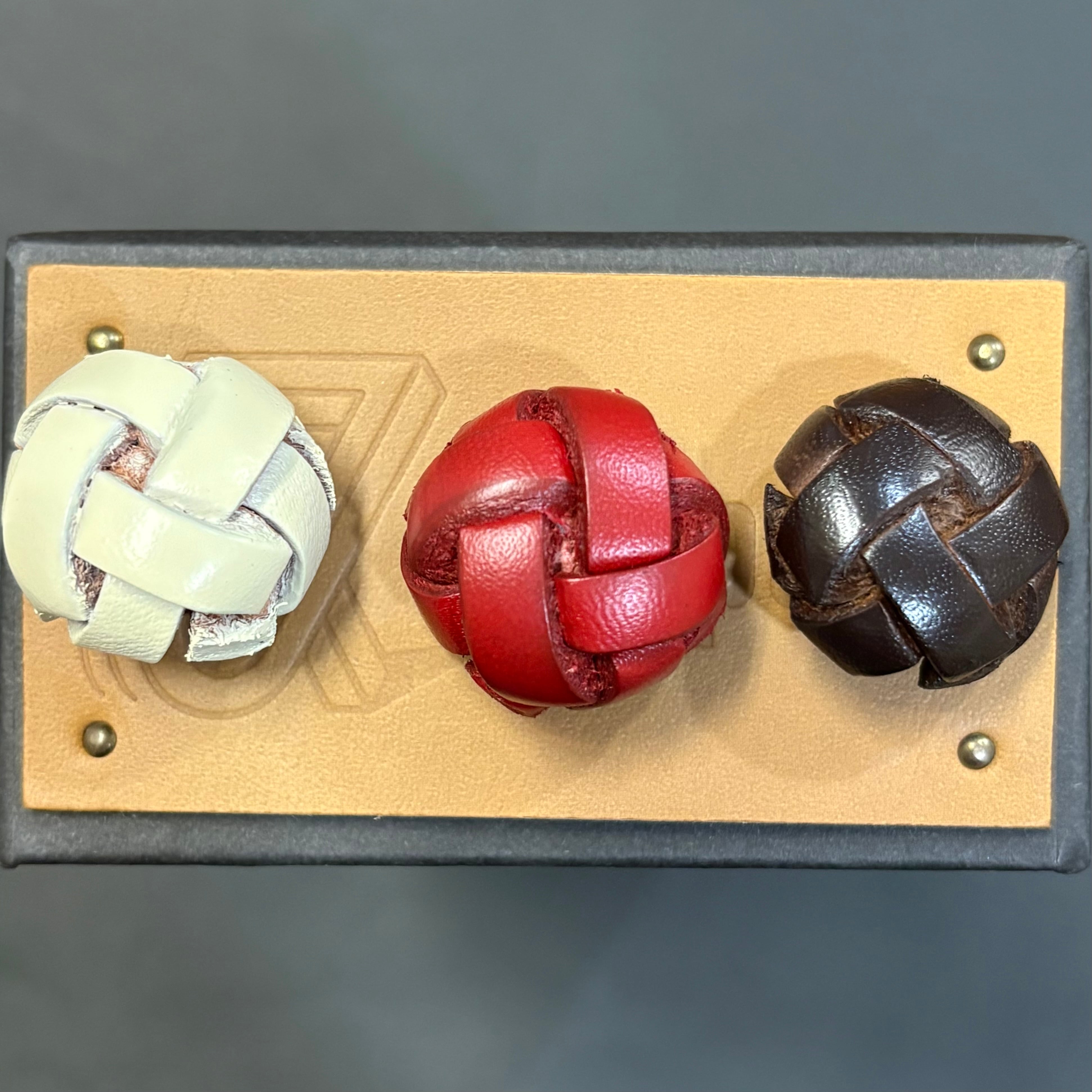 本革バスケットボタン 25mm 白/赤/こげ茶 JNB-0001