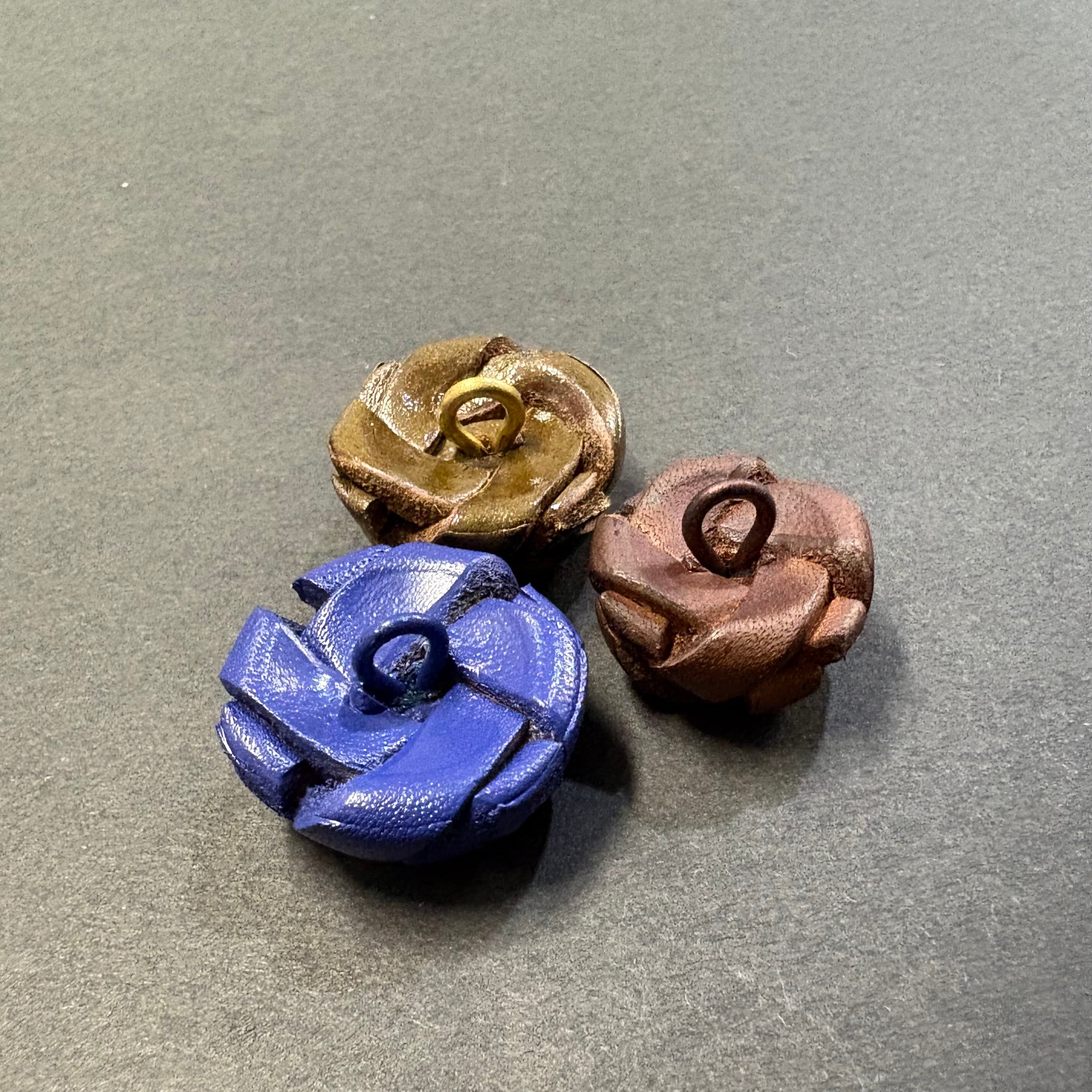 本革バスケットボタン 23mm 茶/カーキ/青 JNB-0002