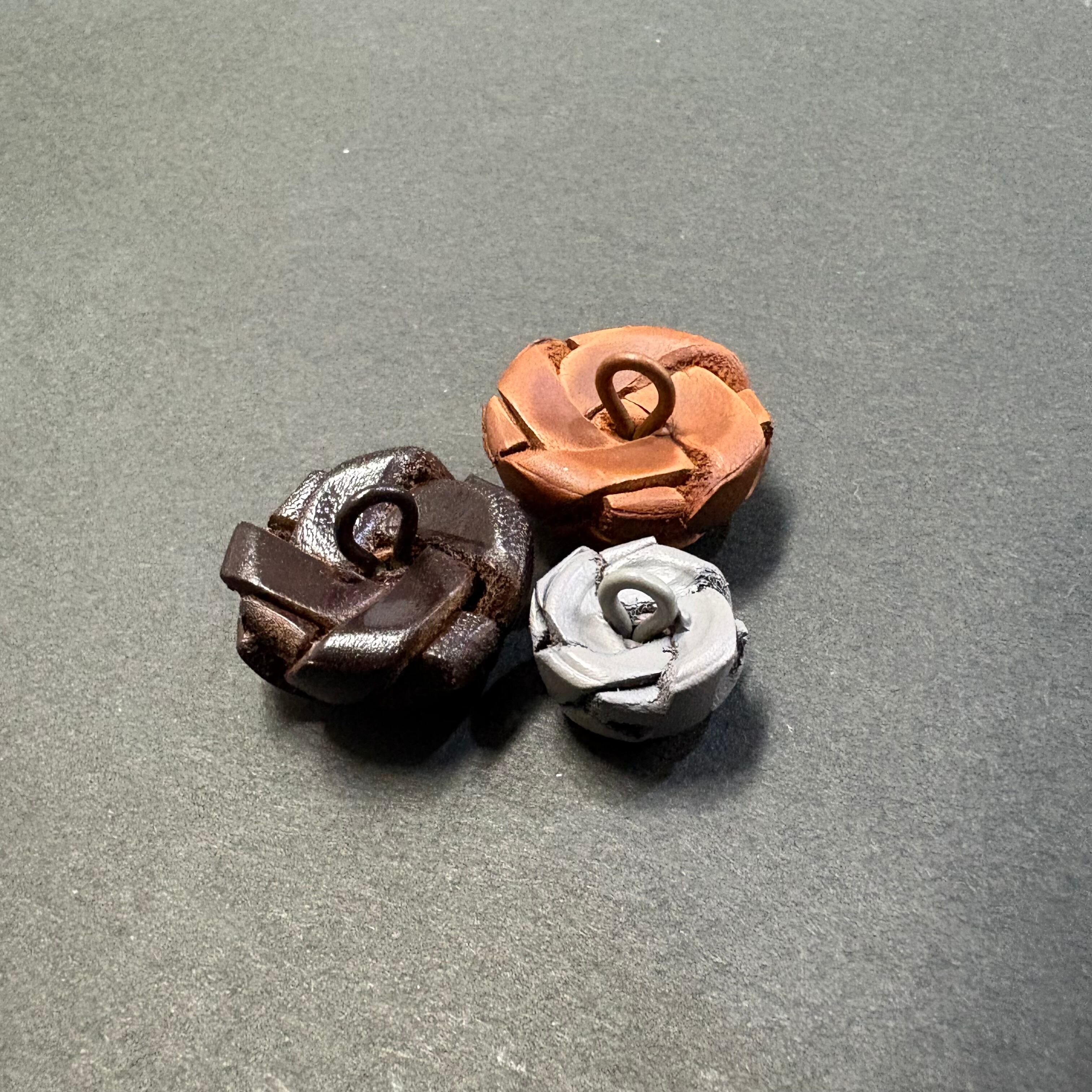 バスケット型の裏足つき本革ボタンです。