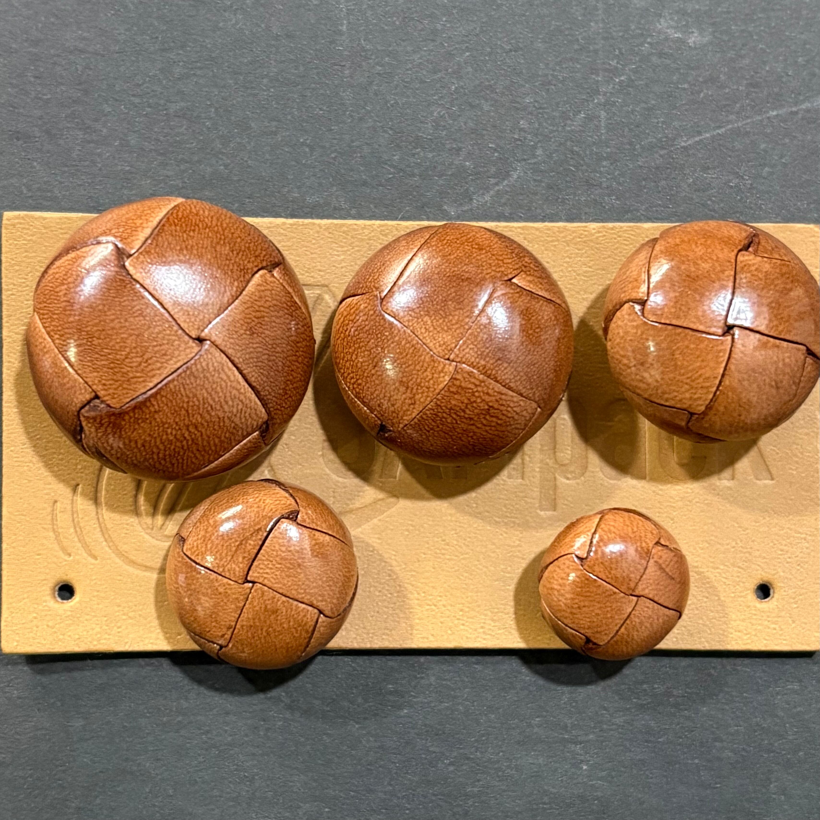 バスケット型の裏足つき本革ボタンです。