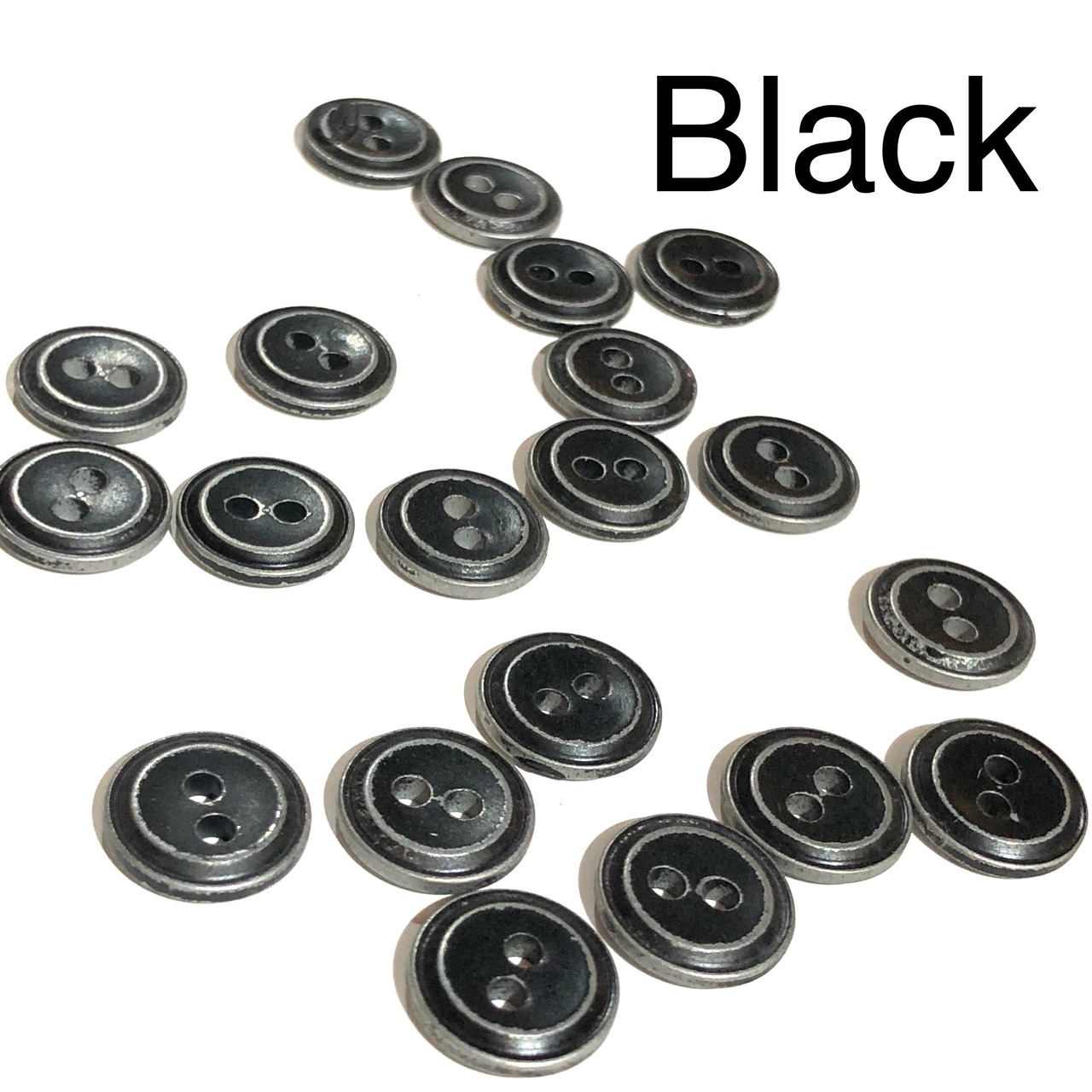 アルミボタンに塗装をし、ダメージ加工をしてヴィンテージ調に仕上げました。