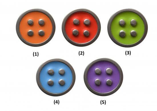 はっきりとした色が印象的な、4つ穴ボタンモチーフのかぶせボタンです。