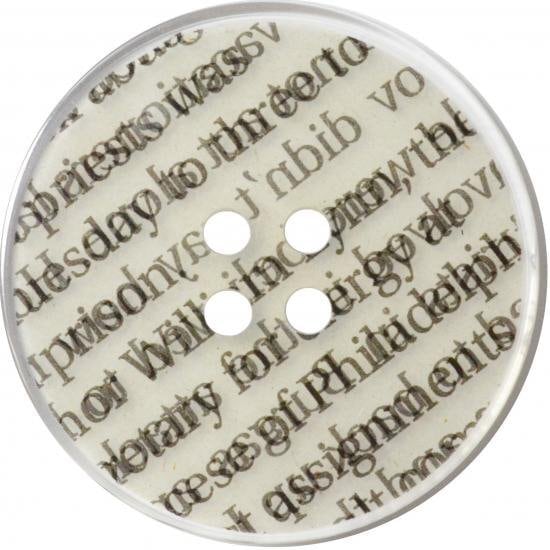 本物の英字新聞をボタンに閉じ込めました。