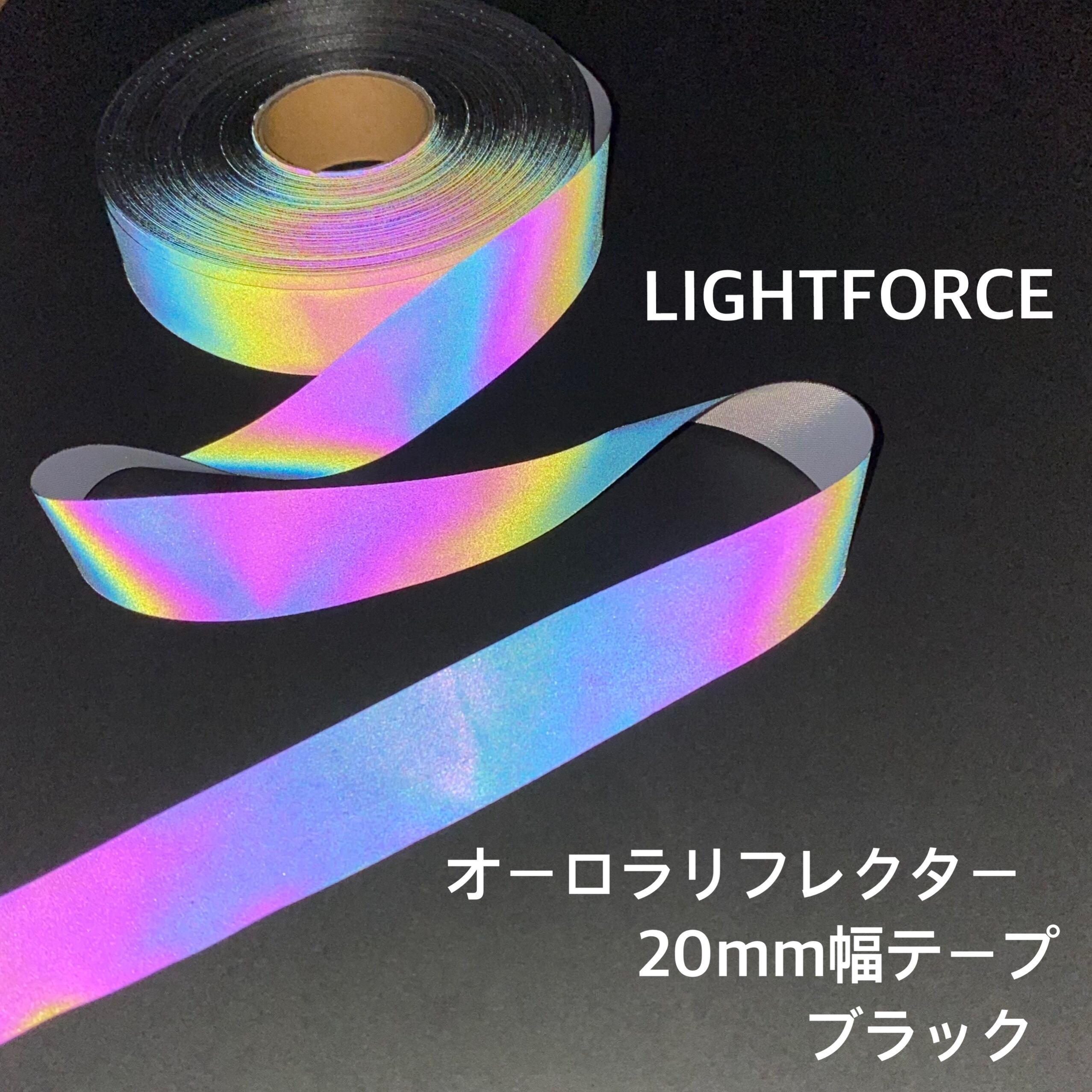 オーロラリフレクターテープ LIGHTFORCE 黒 20mm◇1m単位で切り売り